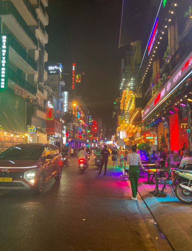 Not far from our hotel was Bui Vien, a well known party street in Ho Chi Minh. We thought we’d just walk by and see what it was all about - it was an absolute sensory overload!